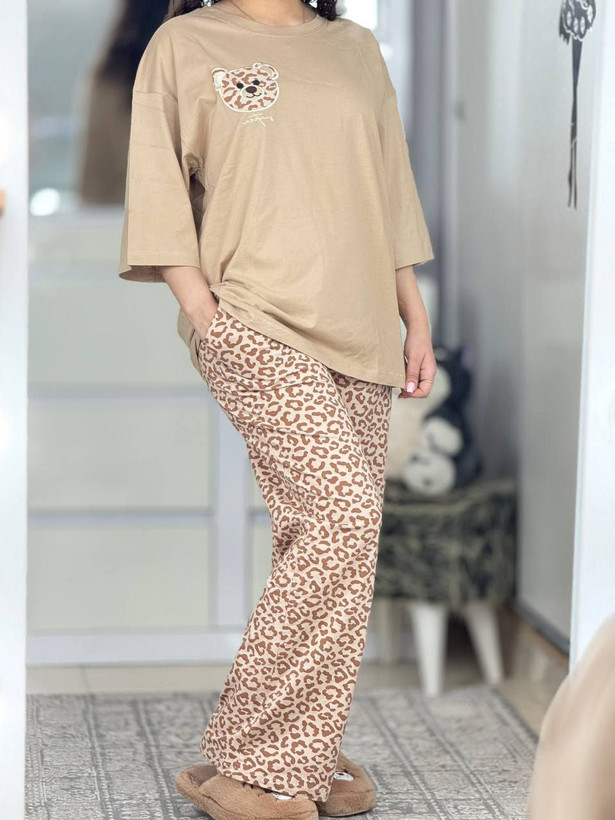 ست تیشرت و شلوار پلنگی . ست خونگی . ست راحتی .پرطرفدار کد 10