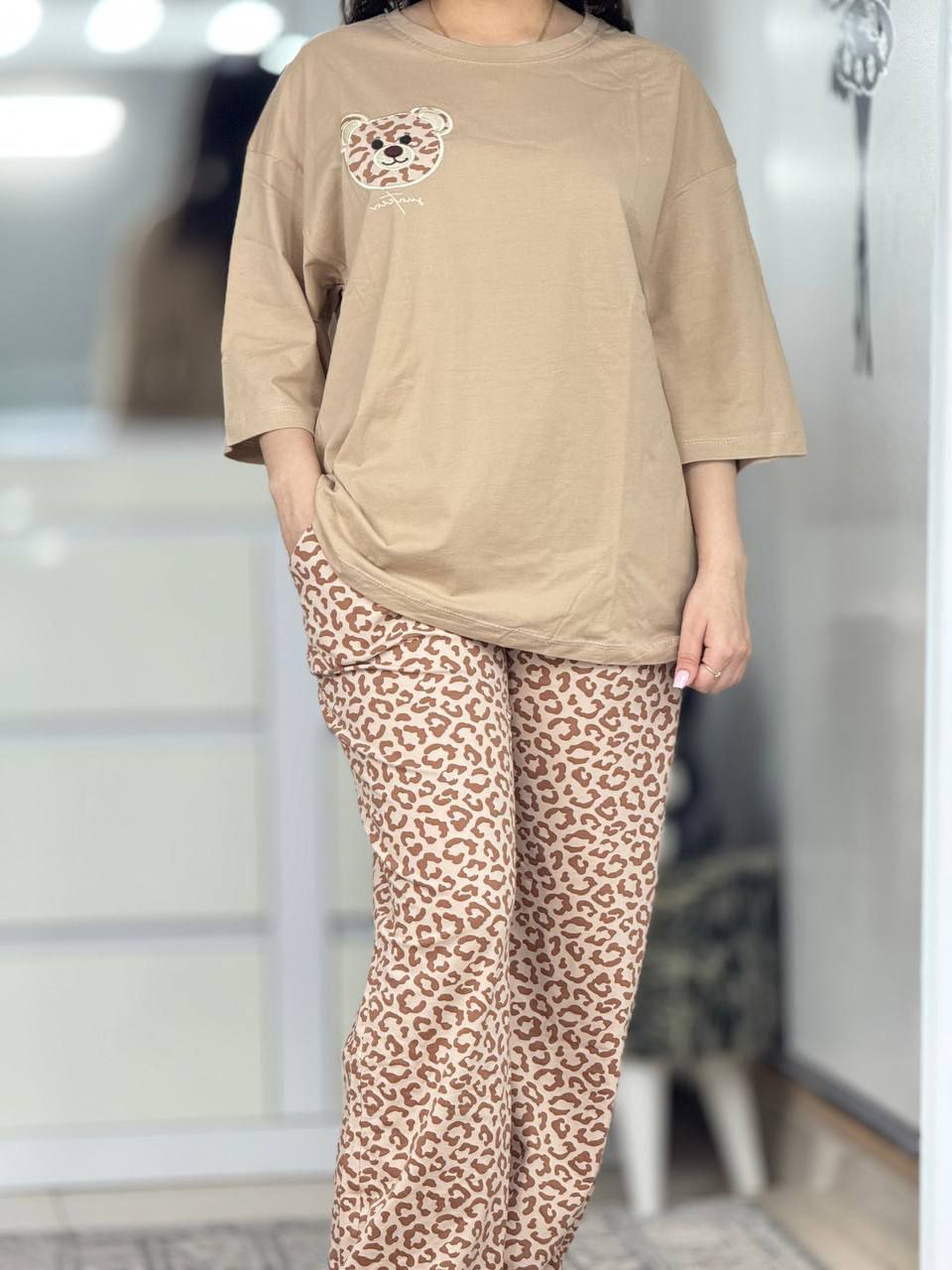 ست تیشرت و شلوار پلنگی . ست خونگی . ست راحتی .پرطرفدار کد 10